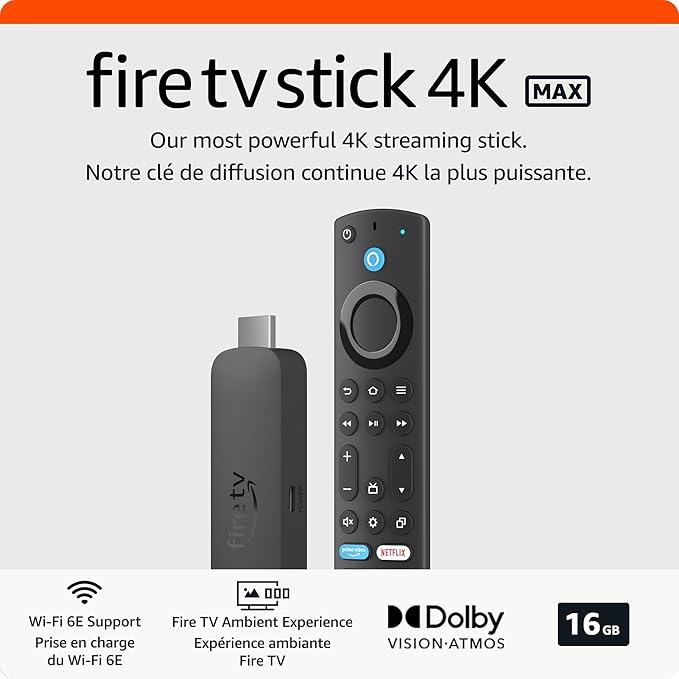 Amazon Fire TV Stick 4K Max streaming device, supports Wi-Fi 6E, free & live TV without cable or satellite